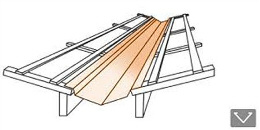 Aplica-se no encontro de duas águas do telhado, canaliza a água para ser coletada mais abaixo por uma calha tipo moldura ou cocho.
